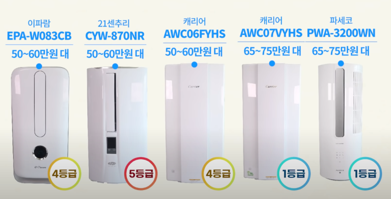 캐리어 1등급 & 캐리어 4등급 제품이었습니다.