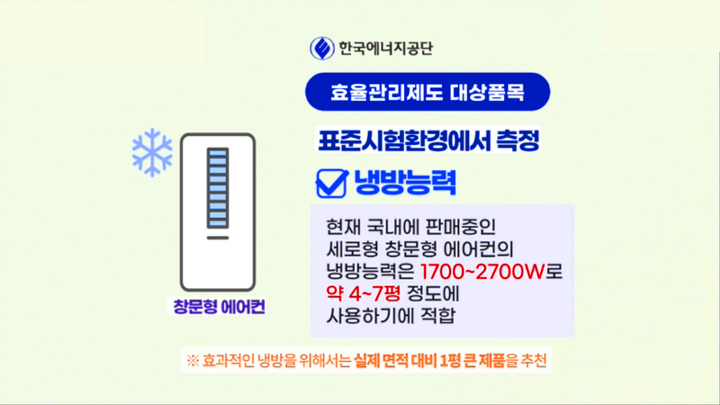 일단, 창문 에어컨은 에너지공단의 효율관리제도에 품목 대상입니다.