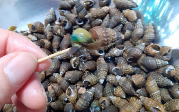 5. 다슬기만 건져내 식혀준 뒤 이쑤시개 등으로 다슬기를 콕콕 찔러 살살 돌려가며 잘 빼줍니다.