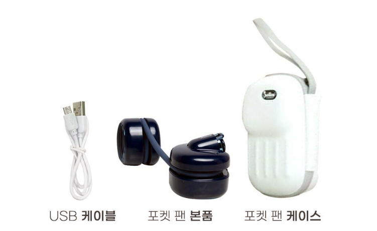 구성품을 살펴보면 USB 케이블과 포켓 팬 본품 그리고 포켓 팬 케이스로