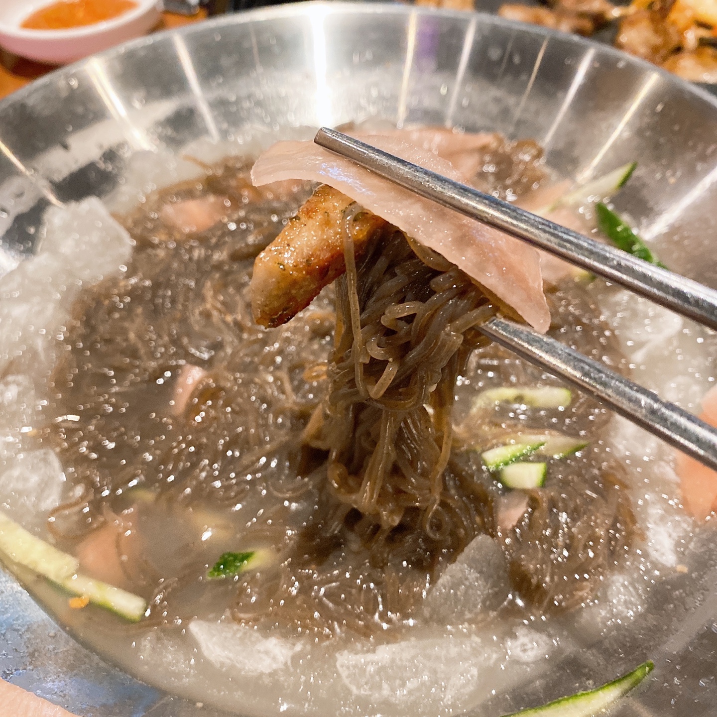 1인분씩 나온 고기의 양은 그리 많아 보이지는 않았지만 2명이서 냉면까지 먹으니 배르고 딱 좋았습니다.