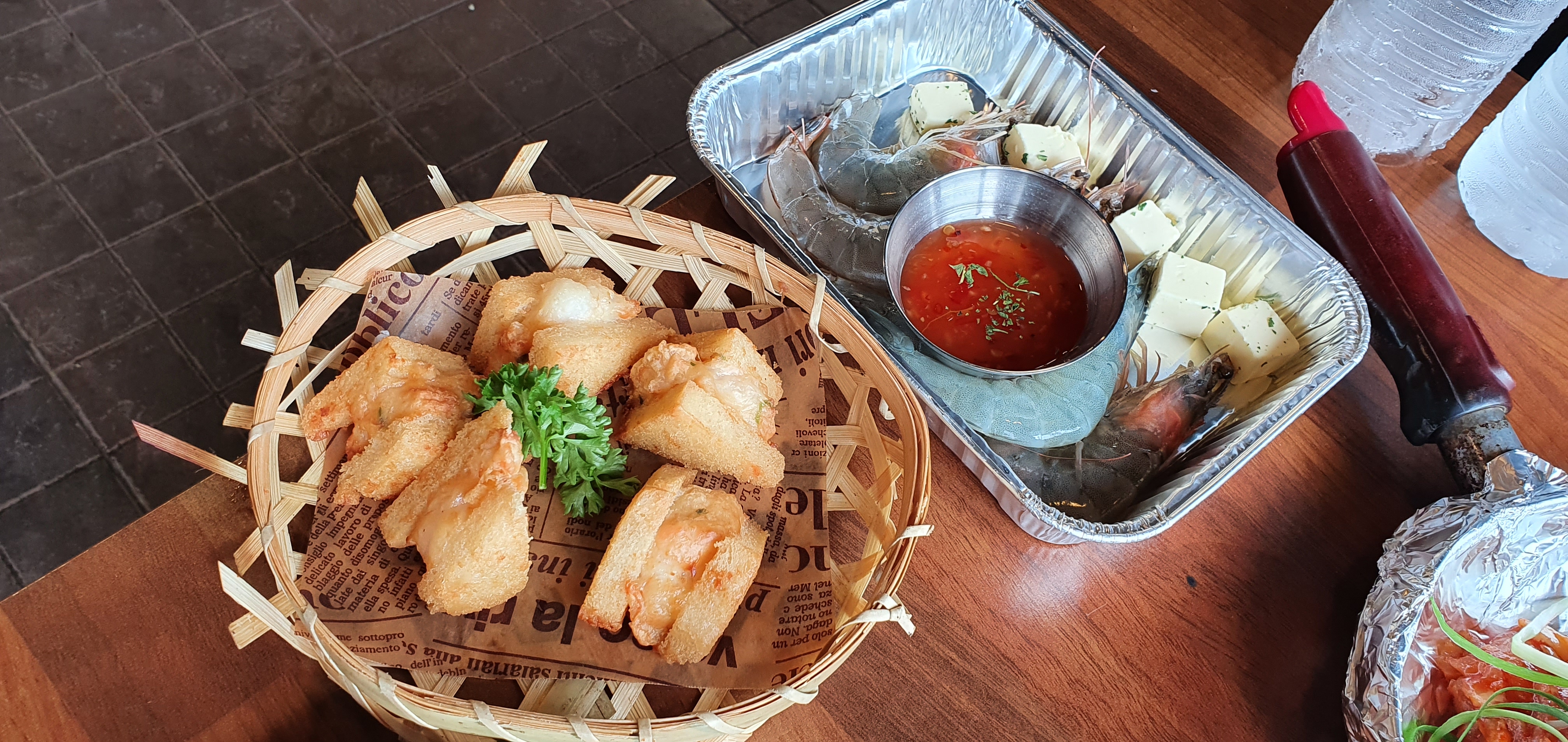 먼저 네이버 예약 확인을 하시곤 서비스 메뉴인 새우 멘보샤와 새우 버터구이를 주셨습니다.