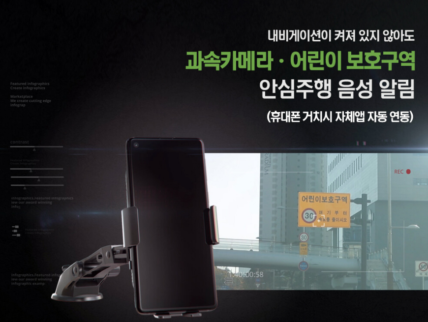 또한 휴대폰 거치 시 자체 앱의 자동 연동 시스템으로 내비게이션이 켜져 있지 않아도