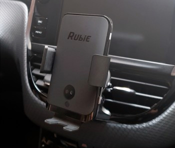 더 넓어진 송풍구 거치대 받침으로 더 견고하게 거치할 수 있도록 제작된 루비 스마트 무선충전기입니다.