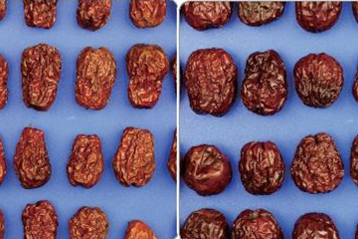 일단 국내산 마른 대추의 경우 색은 연한 황갈색을 띠고 있으며 껍질이