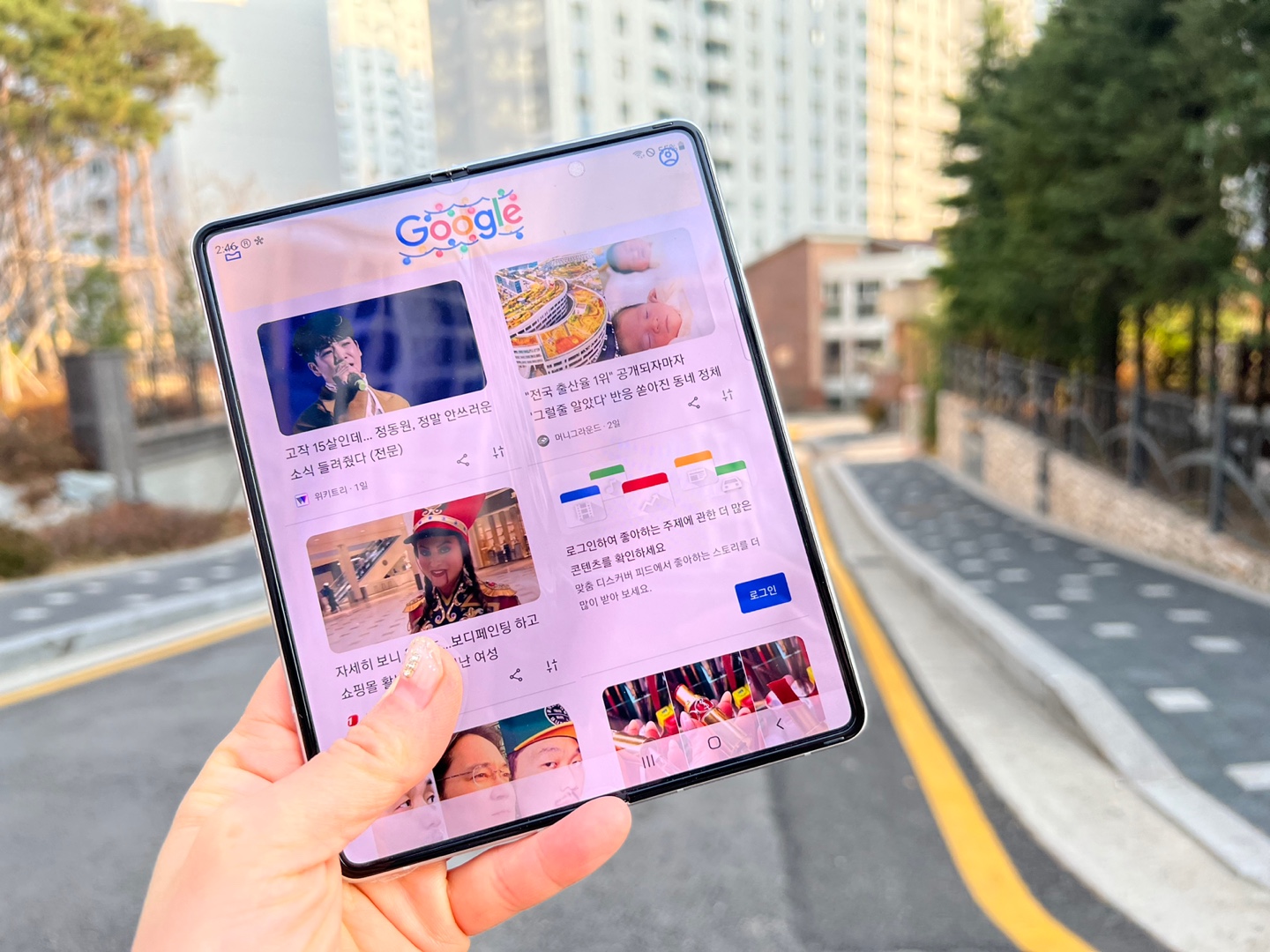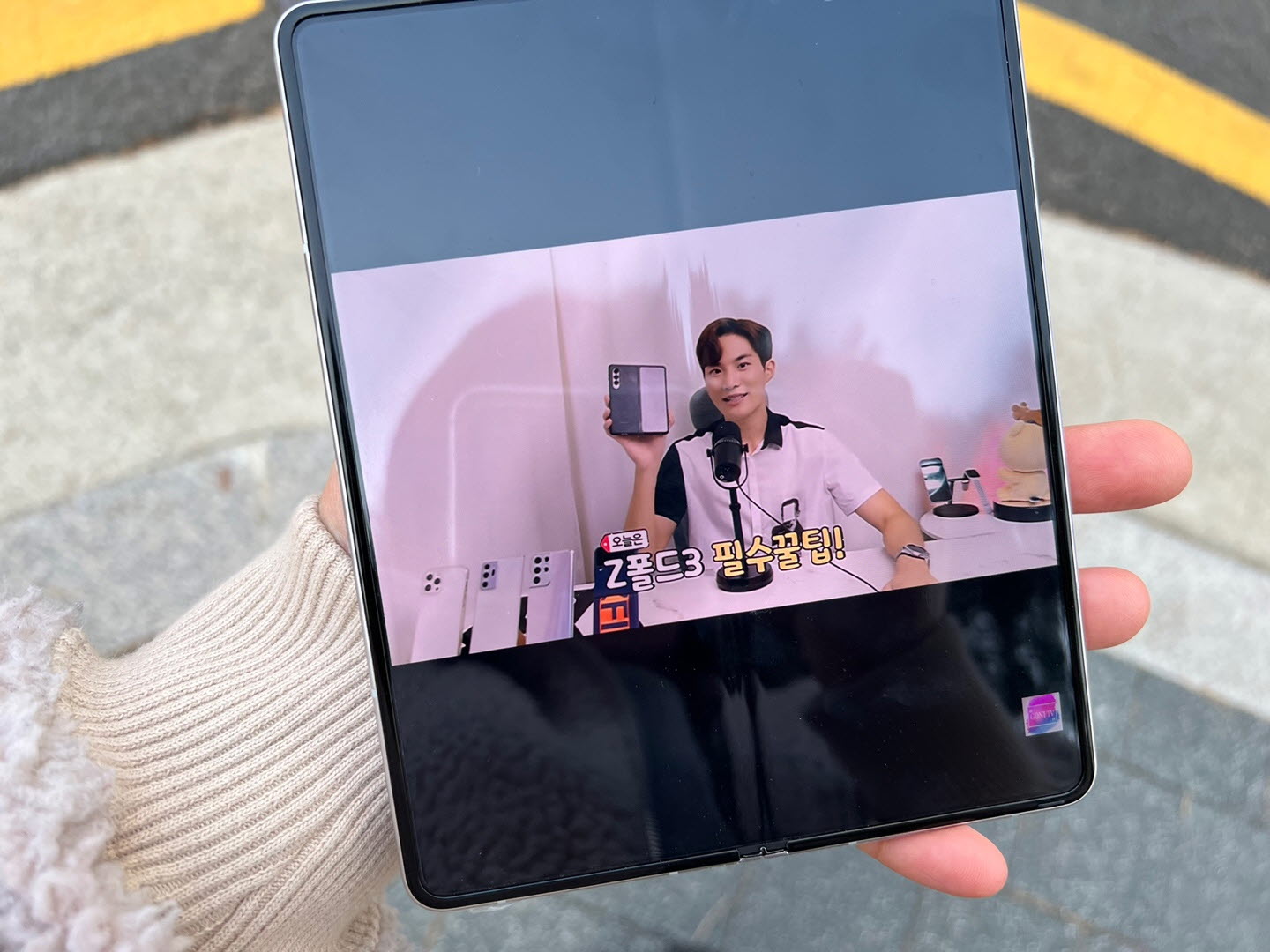 대화면의 갤럭시 지폴드3는 일반 스마트폰의 2배 가까운 사이즈를 자랑하기에,