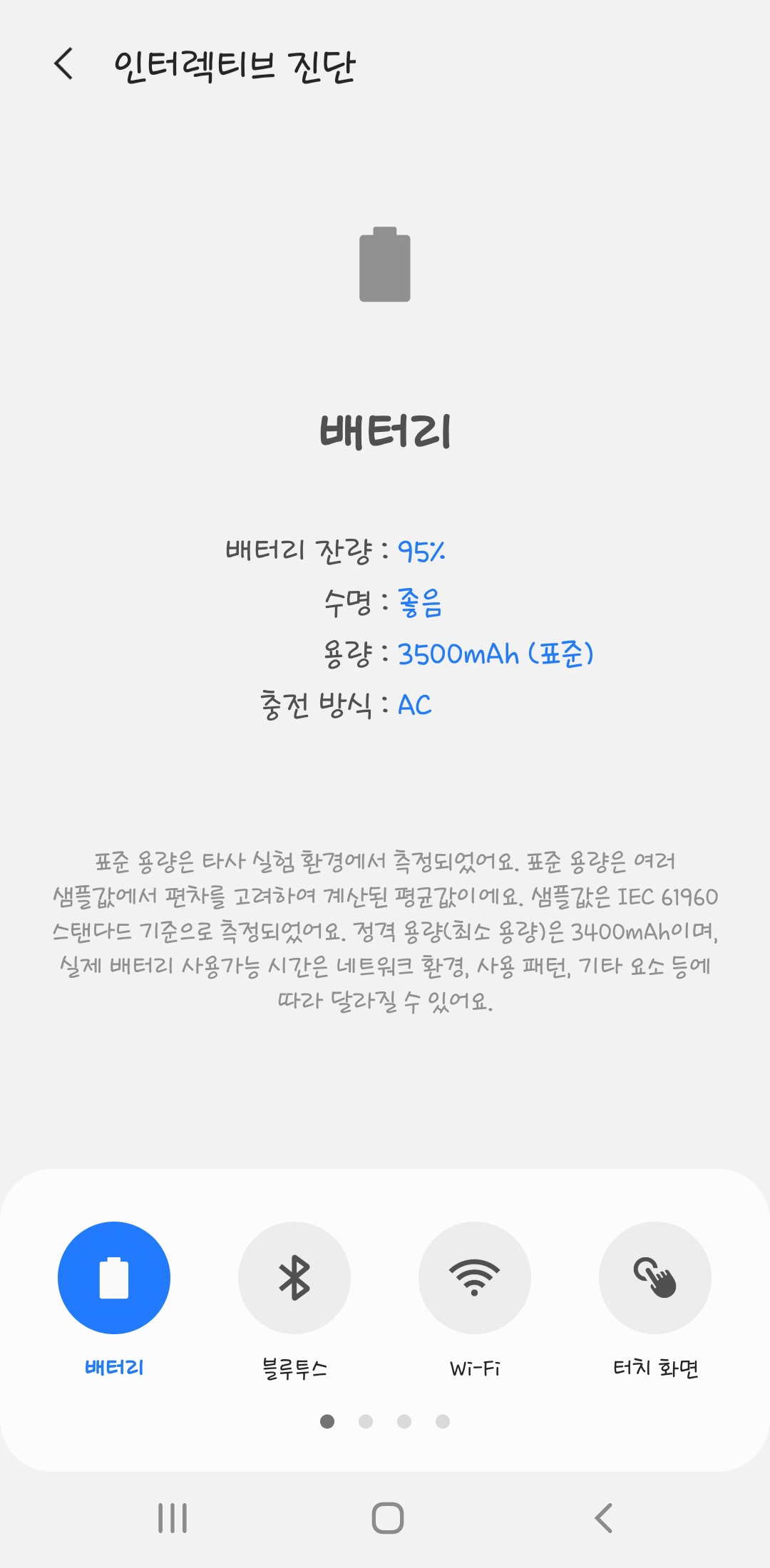 진단 외에도 설정에서 배터리 잔량을 표시하게끔 바꾸는 방법도 알려드릴게요.