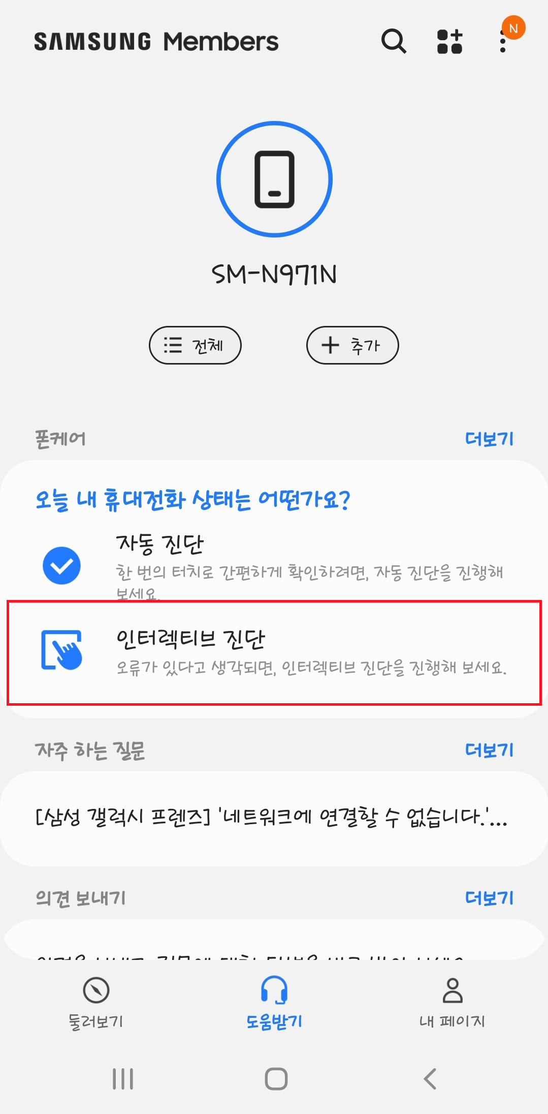 '인터렉티브 진단'을 눌러주세요.
