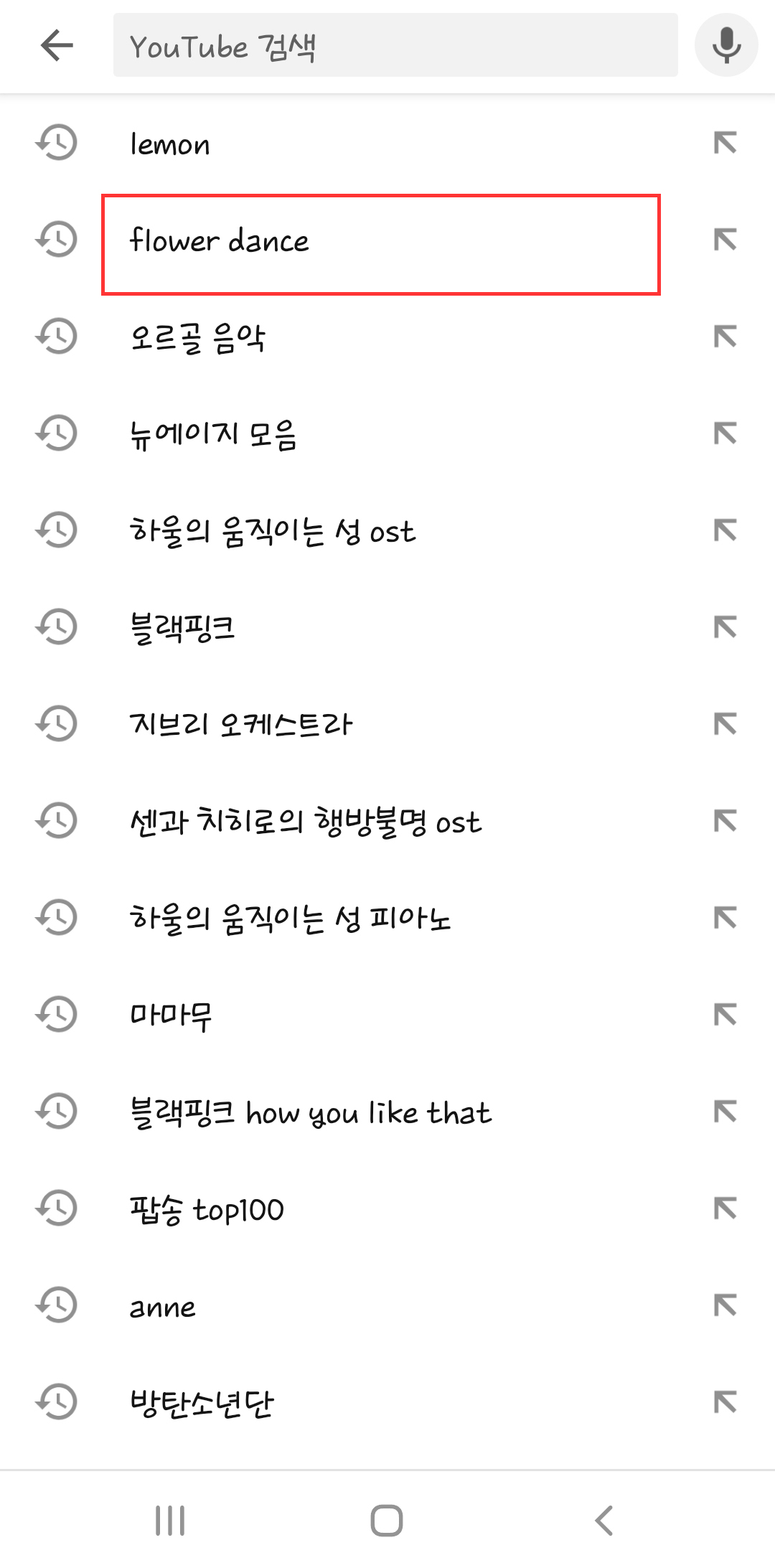 - 검색 기록 삭제 : 검색창에서 검색했던 기록들을 삭제하는 기능입니다. 맞춤 동영상에 있던 검색 기록 맞춤 동영상이 삭제됩니다.