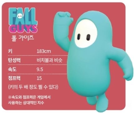 폴 가이즈 게임의 캐릭터들은 자신의 키 높이 2배 만큼 뛸 정도로 점프력이 뛰어납니다. 이를 위해 개발자들은 게임 세계의 중력을 지구의 중력보다 훨씬 강하게 설정하였습니다. 물리 엔진이 지구와 유사한 수준의 중력을 구현한다면 점프 후에 땅으로 떨어지는 시간이 너무 길어 지루할 것 같다는 생각이였기 때문입니다.