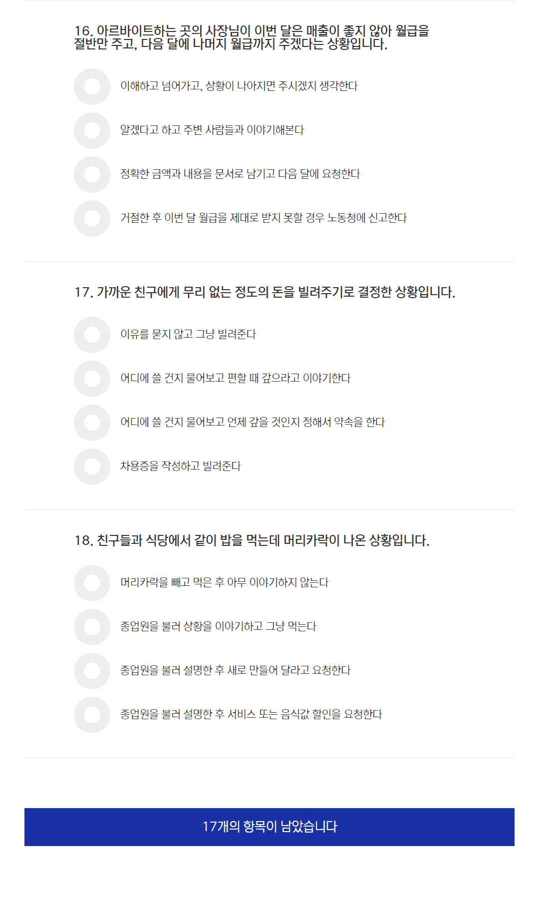 지금 부터 본격적으로 테스트 문제를 한번 풀어보도록 하겠습니다! 직접 풀었던 문제지를 보여드리고 싶었지만, 이미 캡처가 끝난 상황 이였으므로 안타깝지만 아래의 포스트에 제가 작성한 답안을 적어두도록 하겠습니다. (양해부탁드립니다 ^&^)