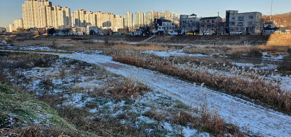 눈이 온 후라 잘 보이지는 않지만 창릉천은 자전거길과 산책길이 서로 나누어져 있어 안전하게