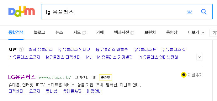 검색창에 'LG유플러스'를 검색해주시고 홈페이지에 접속합니다.