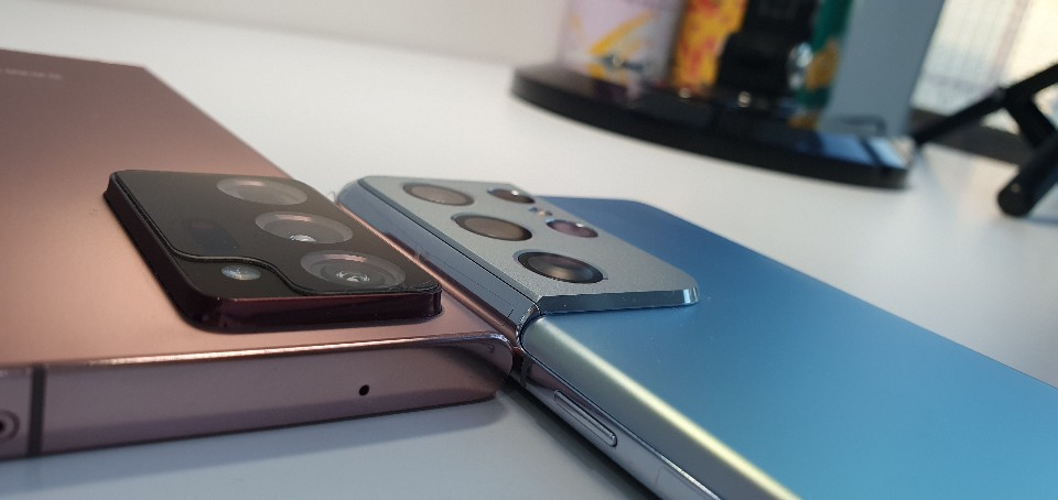 갤럭시S21울트라의 후면은 유리 재질로 고급스러움을 강조했고, 카메라 렌즈가 5개로 영상 촬영 시