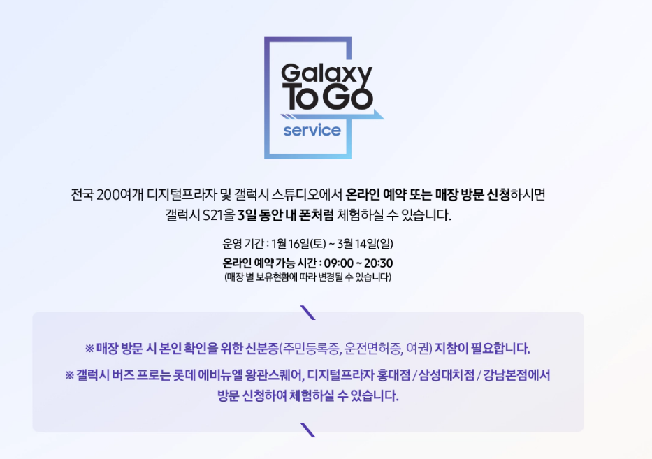 사실 실물을 보고 사전예약을 하는 분들이 많이 없기에, 이번엔 갤럭시 투고(Galaxy To Go)서비스를 이용해