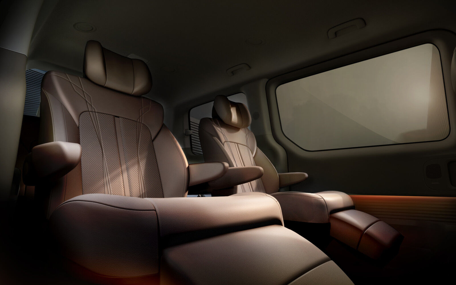 라운지의 모델의 경우 시트 위치가 서로 마주볼 수 있는 스위블링 시트가 적용되었고, 엉덩이를 시트에 밀착시켜 척추의 균형을 바로 잡아주는 프리미엄 릴렉션 시트도 함께 적용 됩니다. 1열 쪽에서는 중앙 센터페시아 화면이 투어러와 카고 모델보다 더 커지며, 계기판 또한 10.25인치 LCD 로 적용, 중앙 기어 변속기가 버튼식으로 바뀌게 됩니다.